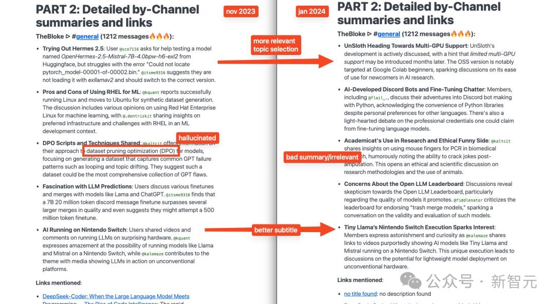 - 2024年1月的模型在总结中添加小标题的能力略有提升