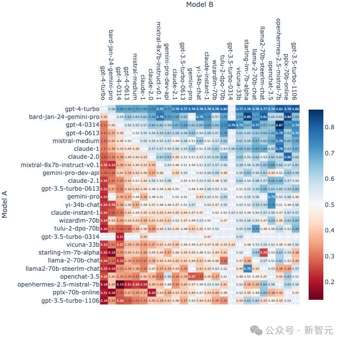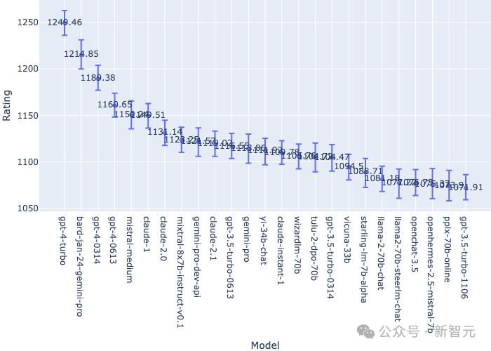 而且,这个Elo评分的数值是绝对的。也就是说,当未来加入新的聊天机器人时,我们依然可以直接通过Elo的评分来判断哪个聊天机器人更厉害。
