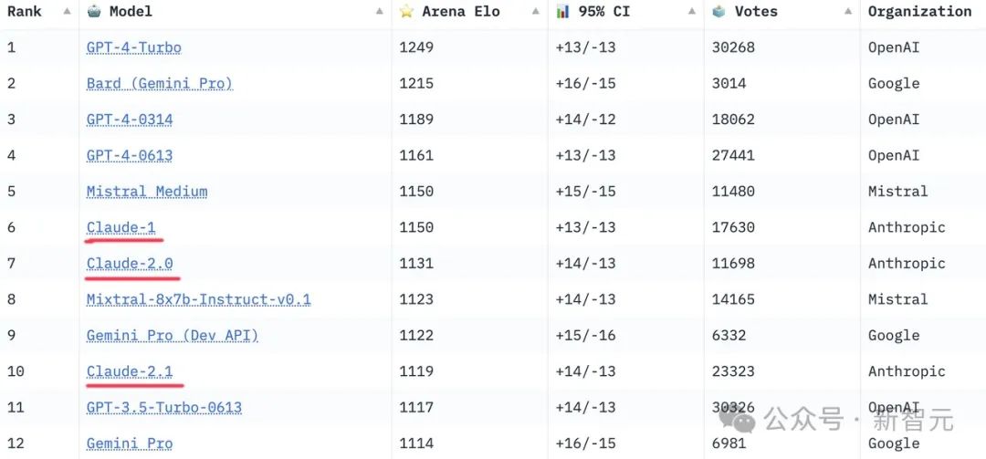 而最有意思的,还要数网友在排行榜中发现的「华点」了:号称是GPT-4最大竞品的Claude居然越更新越弱了。
