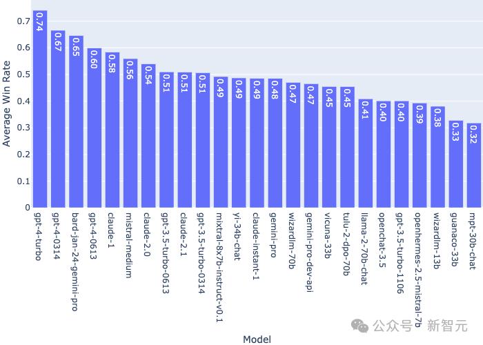 在假设等概率抽样和不存在平局的情况下,相对于所有其他模型的平均胜率
