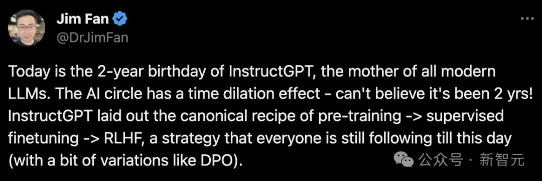 今天(1月28日),英伟达高级科学家Jim Fan发推纪念了InstructGPT发布二周年。