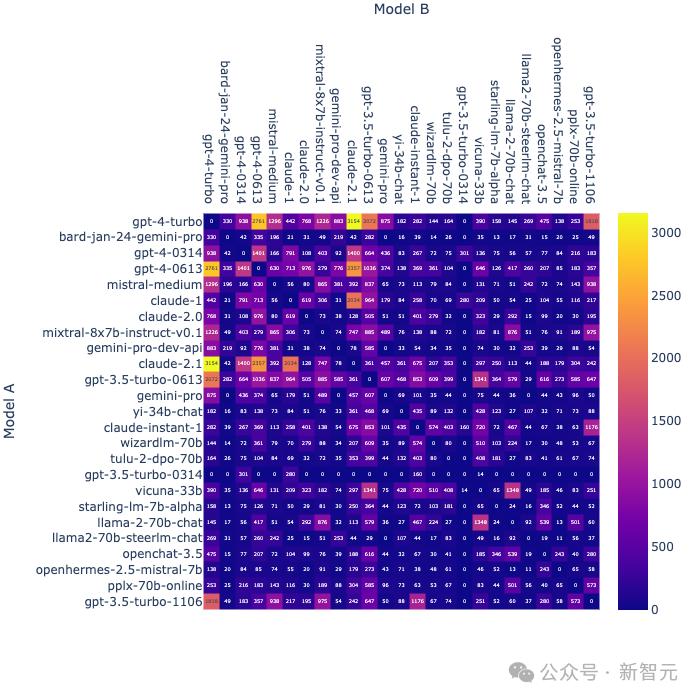 榜单通过类似Moba游戏中的「排位赛」机制,让各家大模型通过PvP的方式来排出性能高低。