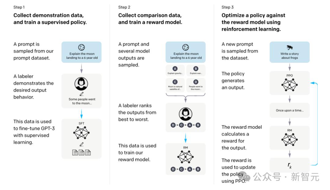 - InstructGPT在2022年的NeurIPS会议上首次亮相,但它并不是RLHF的发明者。实际上,相关博客将读者引向了OpenAI团队在2017年完成的原始RLHF研究。