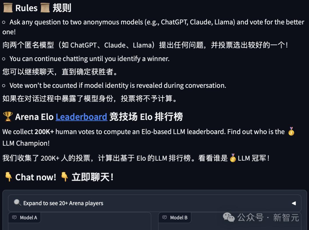 期间,用户会与模型(不知道具体型号)进行互动,并选择他们更喜欢的回答。而这些投票将会决定模型在排行榜上的名次。