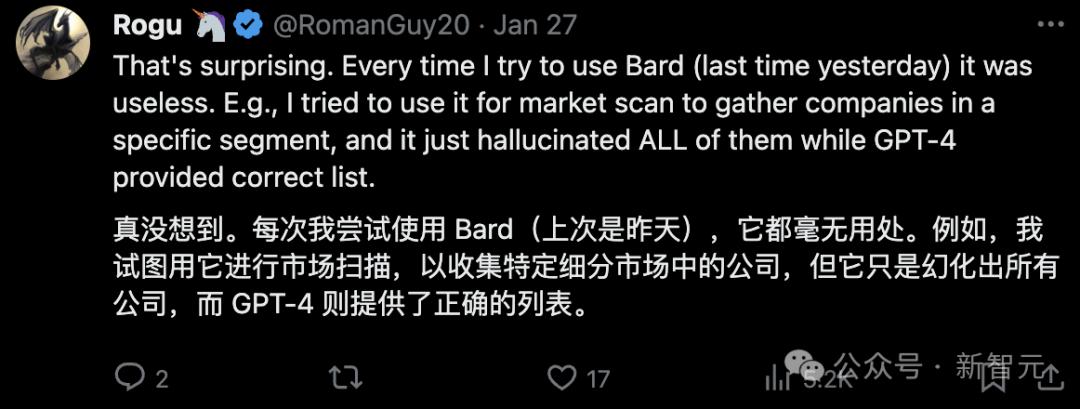 不过还是有网友吐槽,即使在PvP排行榜上Bard已经取得了很好的成绩,但是对于理解用户需求和解决实际问题的能力,Bard和GPT-4依然还有很大差距。