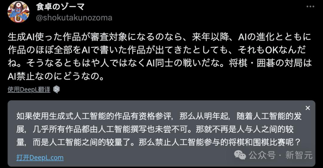 《日本时报》报道称,许多评论者表示担心,如果允许AI竞争最高奖项,文学的未来会是什么样子?