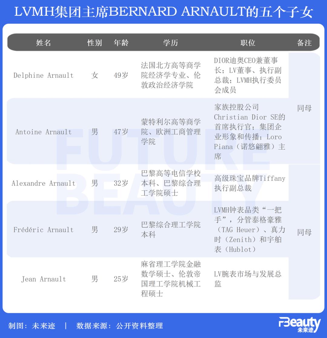 现在来看这5位“继承者”,可以说在Bernard Arnault以身作则的教育下,他们均毕业于法国顶尖名校,如今也都在集团分别担任不同的重要职位。