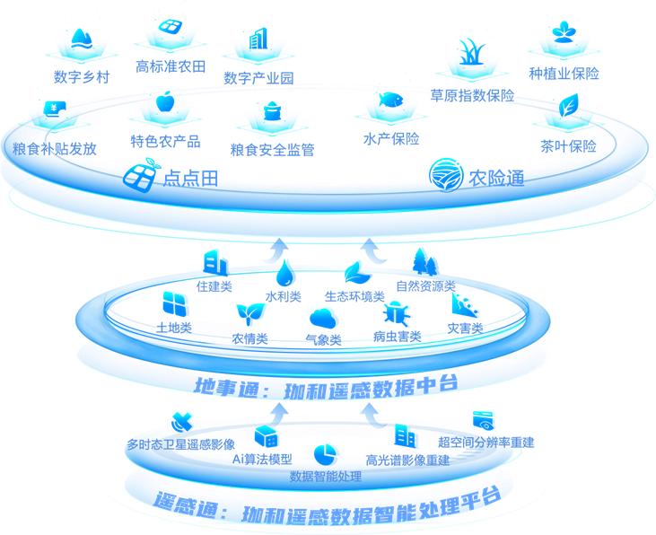 经过多年的研发,珈和做出了遥感通智能运算平台和地事通遥感数据平台。遥感通结合了大量前沿的AI算法模型,使用了超空间分辨率重建等行业新兴技术,实现空间数据的智能化运算,核心技术的沉淀和研发聚焦在提高数据应用的稳定更新、满足应用需求的准确有效,以及降低商业落地的成本消耗。地事通集合了遥感通平台计算出来的标准化数据产品,可以给农情、气象等九个监测种类提供需要的遥感数据,通过低代码交付的形式,以提高用户调用数据的便利性和时效性。