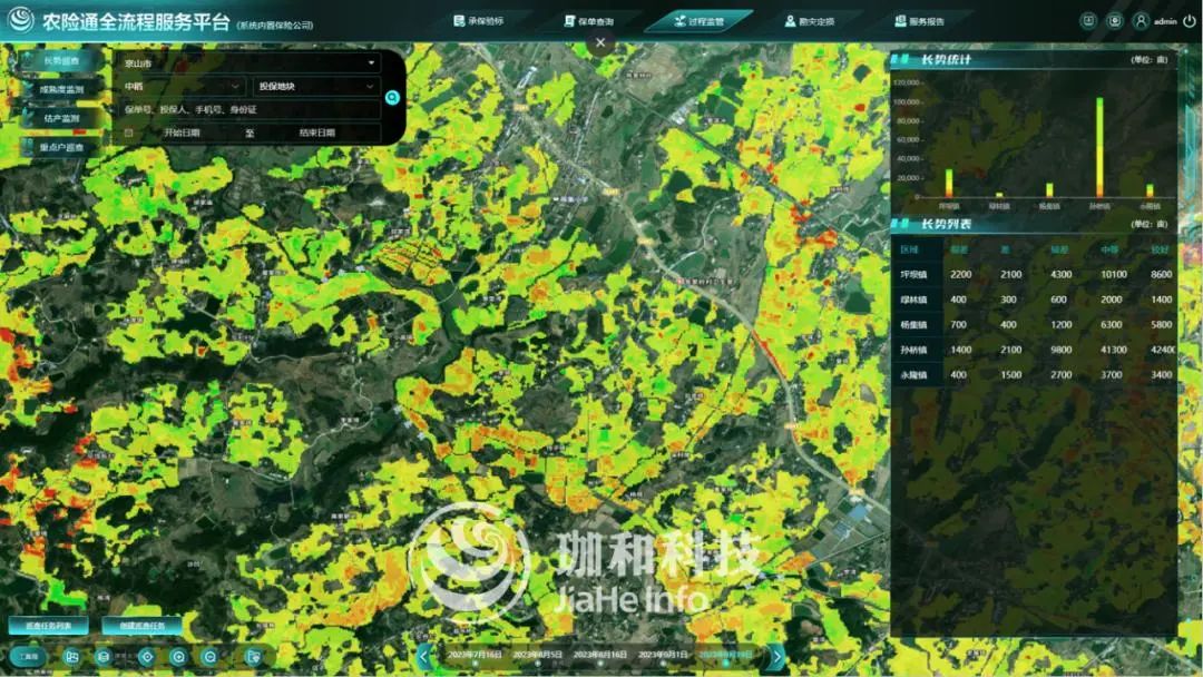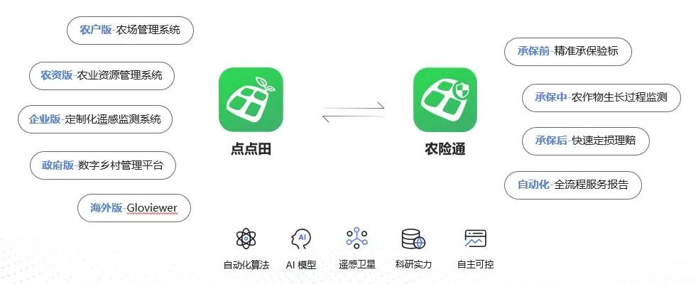 为了更好理解客户需求,珈和开始改变组织架构,面向不同客户群体,建设单独的产品和业务团队。同时,珈和开始改变服务形态,从原来的提供数据,开始转型为数据加服务,以客户的需求为指标建立终端系统。经过深度调研后,珈和以遥感通和地事通为技术底座,围绕农情和农险搭建了两个SaaS软件——点点田和农险通。