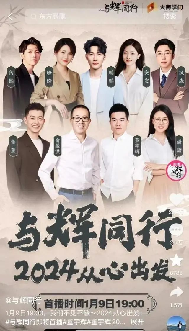 俞敏洪对外表示,与辉同行是一个的独立平台、独立IP,专门用于名人访谈、书籍售卖以及文旅宣传等,不再执着于卖货。