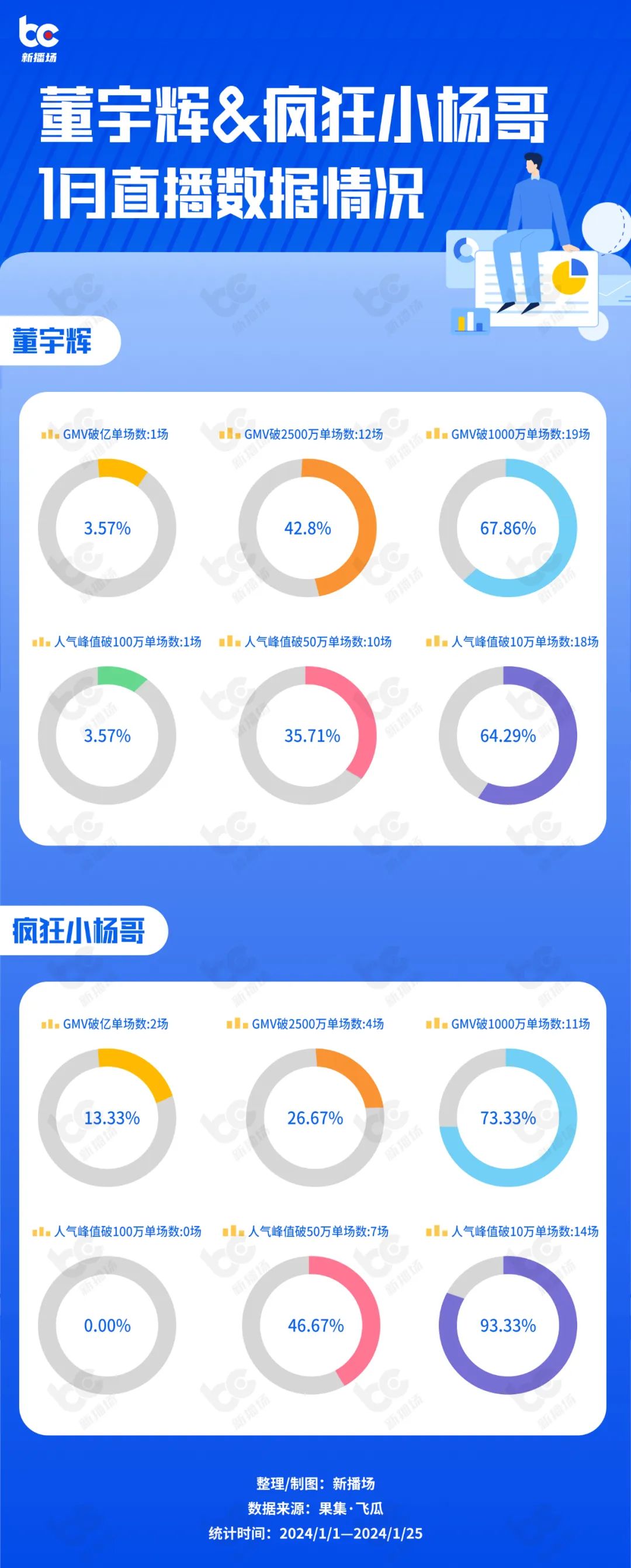 为此,新播场对比了董宇辉与疯狂小杨哥1月开播直播至今的相关数据,看看两人未来的较量会出现在哪里?