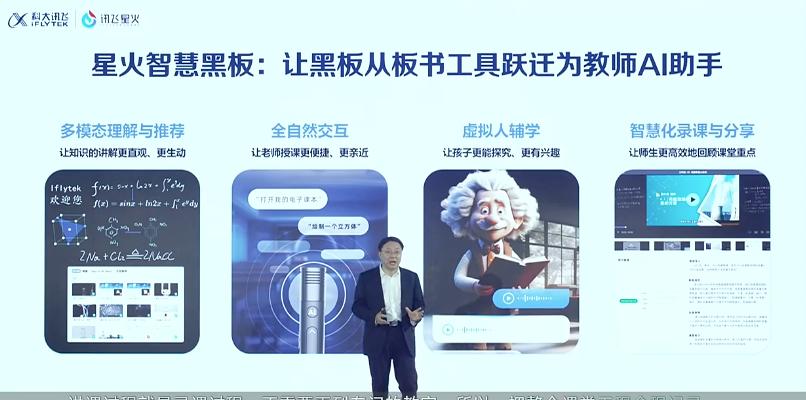 新推出的星火智慧黑板,是基于星火大模型打造的一款AI硬件产品。这款智能黑板具备多模态理解与推荐、全自然交互、虚拟人辅助教学、智慧化录课等多种功能,能够让知识的讲解更直观,让老师授课更便捷,也把名家如爱因斯坦等以虚拟人的形式搬进了课堂,辅助学生更高效的学习。