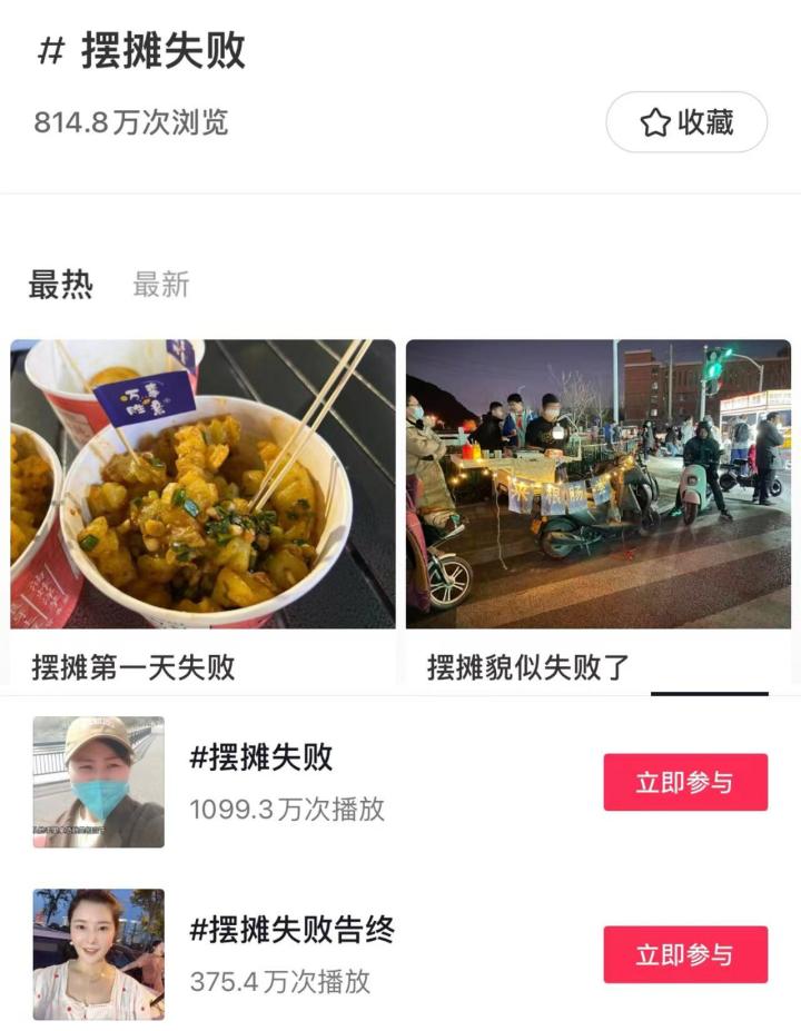 摆摊大潮下,“摆摊失败”的话题度同样居高(图源:网络)
