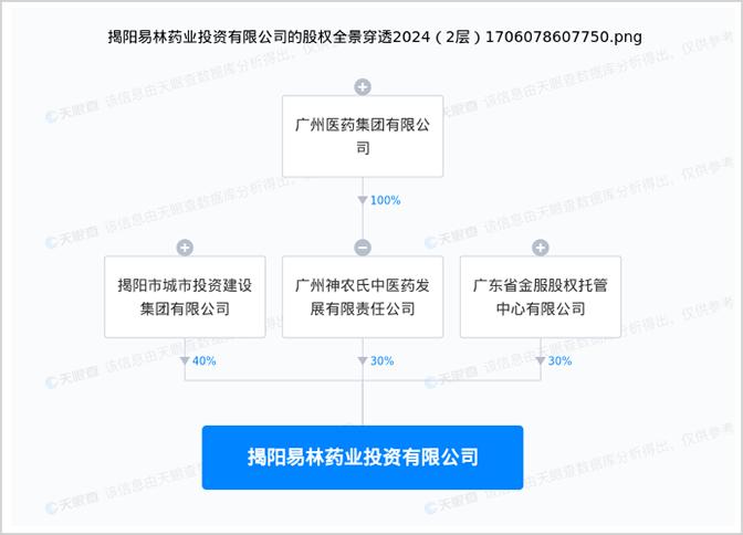 易林投资成立于2020年8月18日,股东均为清一色的国资,揭阳城投持有40%股权,广东金服股权托管中心、广州神农氏中医药发展有限责任公司分别持有30%股权。