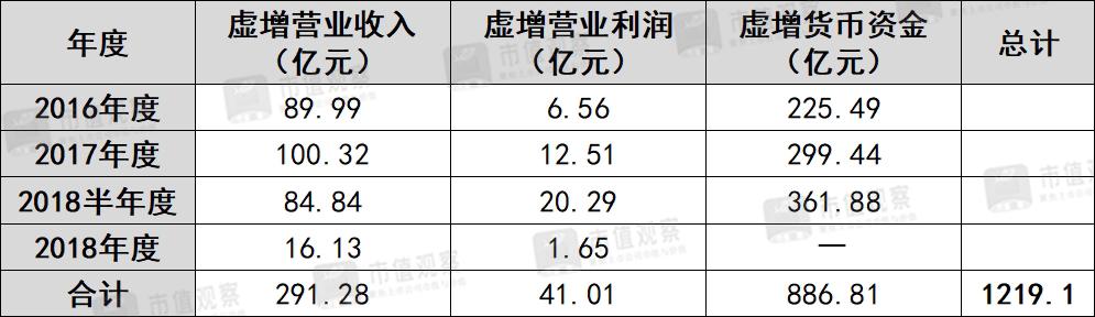 次年4月,康美药业主动“揭丑”,承认公司在2017年虚增货币资金299亿元。8月,证监会查明后的真相更让整个资本市场咋舌,康美药业在2016年至2018年上半年,分别虚增营业收入89.99亿元、100.32亿元、84.84亿元,虚增金额高达约300亿,累计虚增货币资金886亿元之巨,创下A股市场有史以来最大的造假纪录。