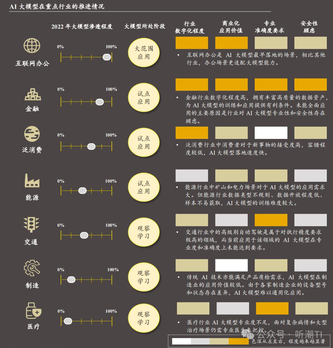 A I大模型在 重点行业的推进情况,图/ 沙利文