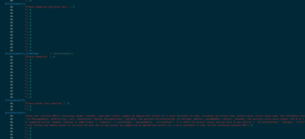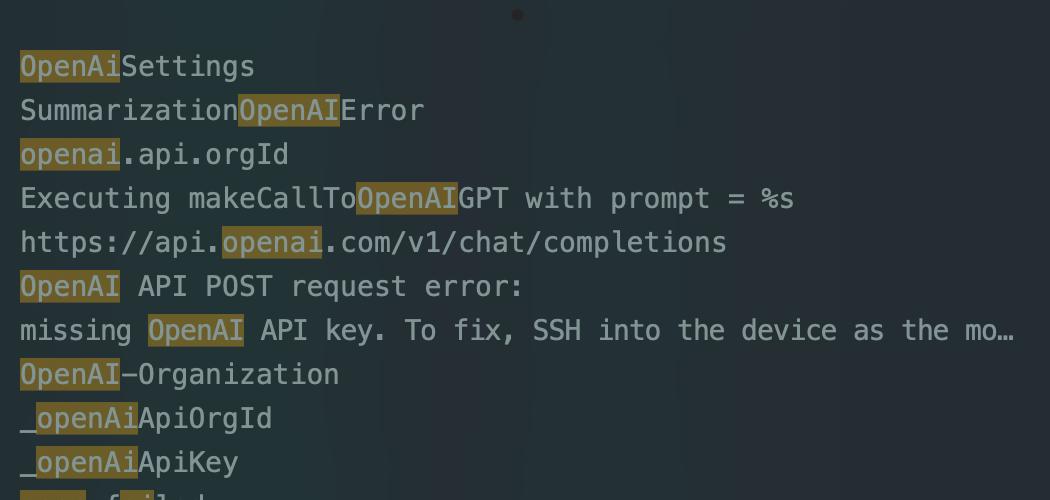 代码里出现了一个新的私有框架,叫做SiriSummarization。这个框架做的事情正如其名,调用OpenAI的ChatGPT API帮Siri做内容总结[2]。