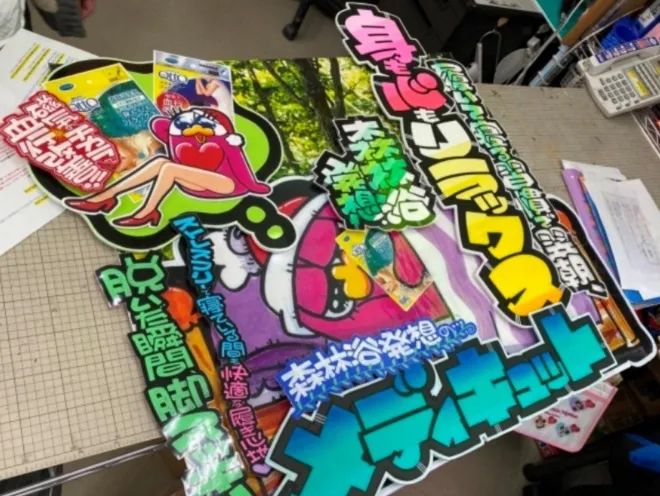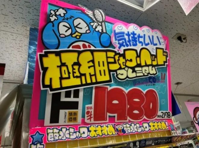 POP不全是平面的,有很多是三维立体的,“闪亮而丰满的字体”是唐吉诃德POP的一个特征,它在唐吉诃德内部被称为“Donki Moji”。