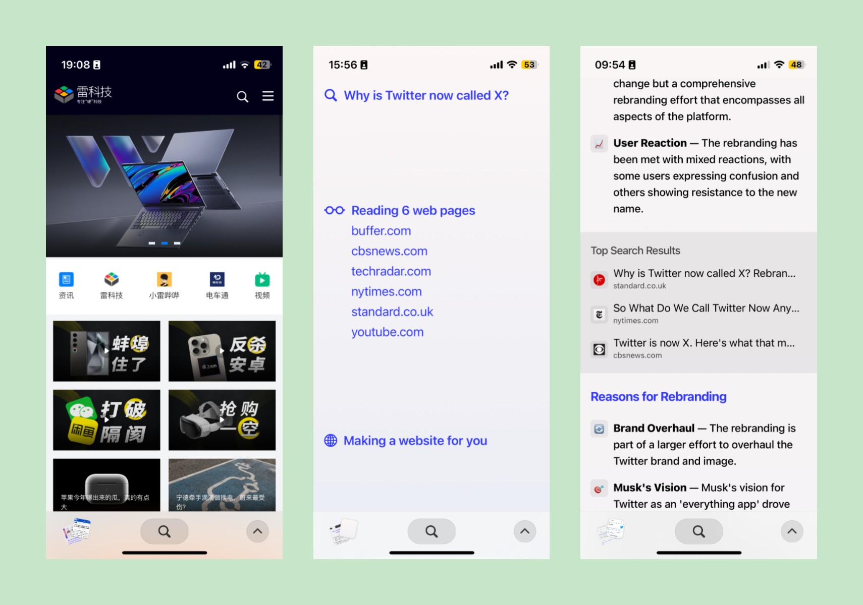 从这点来看,Arc Search 还不如另一家 AI 搜索引擎——Perplexity。但至少,就像官方博客中说,Arc Search 确实在为移动浏览器带来一些新的、不同的东西。