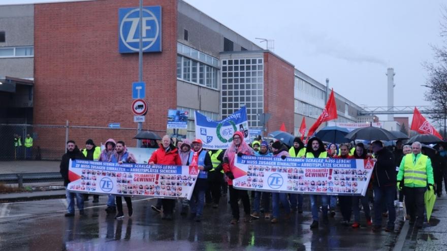 采埃孚员工抗议裁员,图片来源:Automotive News Europe