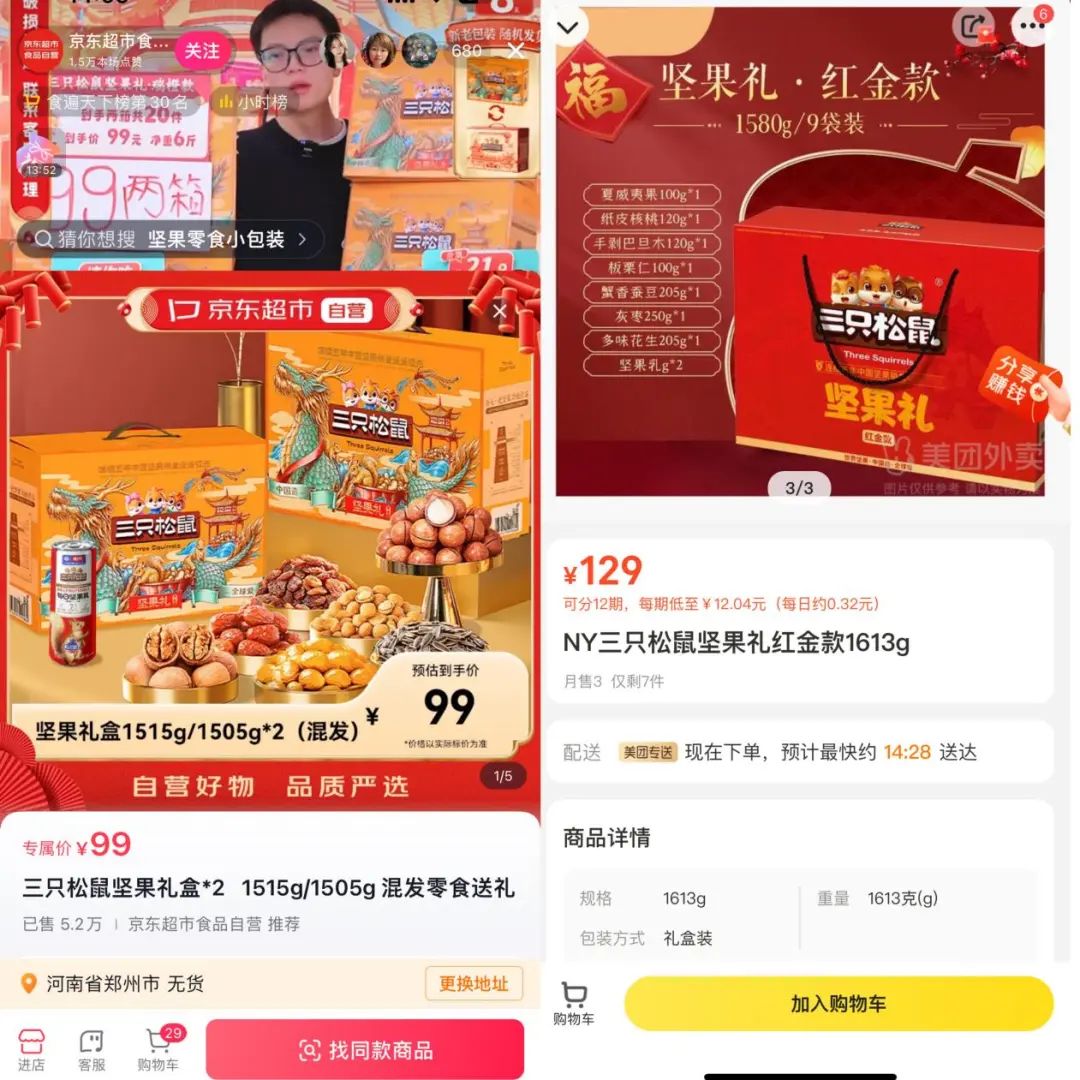 第一款三只松鼠坚果礼盒,上架即被抢空,据统计显示销售额达1.6亿元。