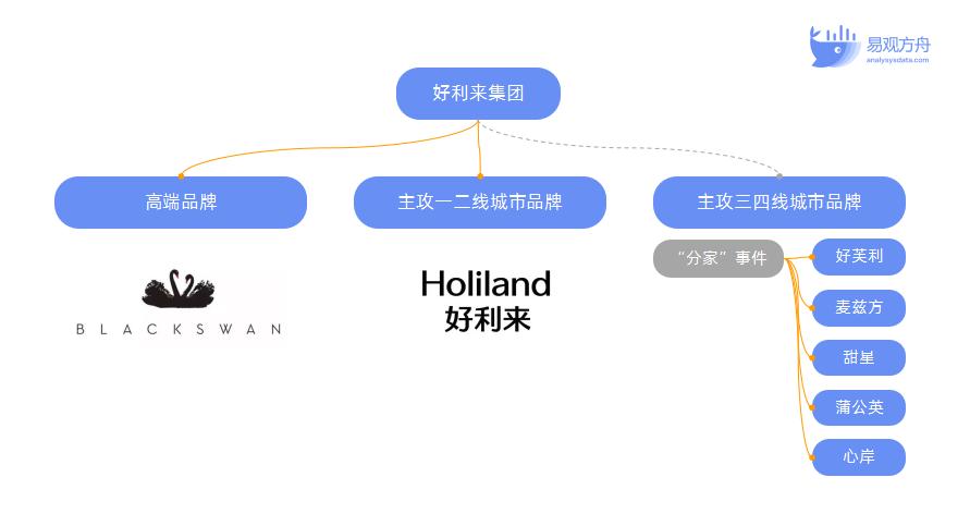 2019年闹得沸沸扬扬的好利来“分家”事件,表面看似“分家”,似乎实则是摈弃不符合好利来品牌标准的直营门店,用其他品牌以“星星之火,可以燎原”之势去主攻人群覆盖范围更广的三四线城市。