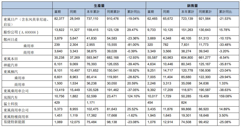 来源:东风汽车集团2024年12月产销快报