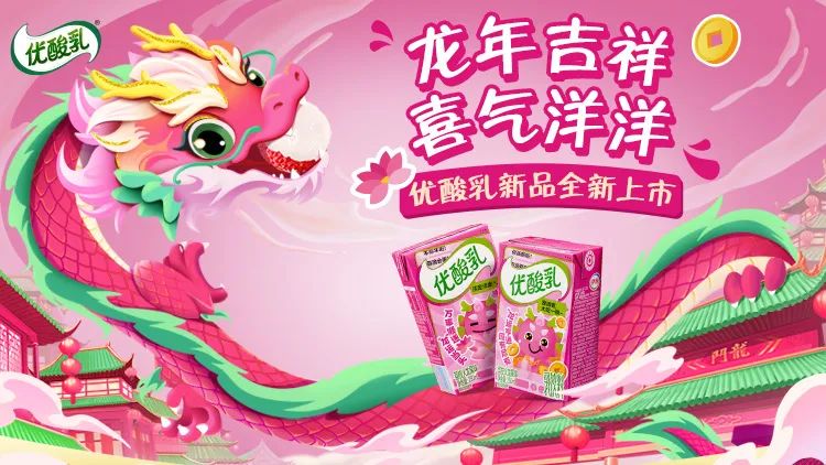 伊利也试图再度复刻此前的成功经验,将于小年在伊利官方旗舰店直播间开展「优酸乳龙年年货大集」活动,即为消费者送上红红「火」火、大吉大「荔」的新春祝福,又将新年限定产品的心智进一步在消费者群体中强化。