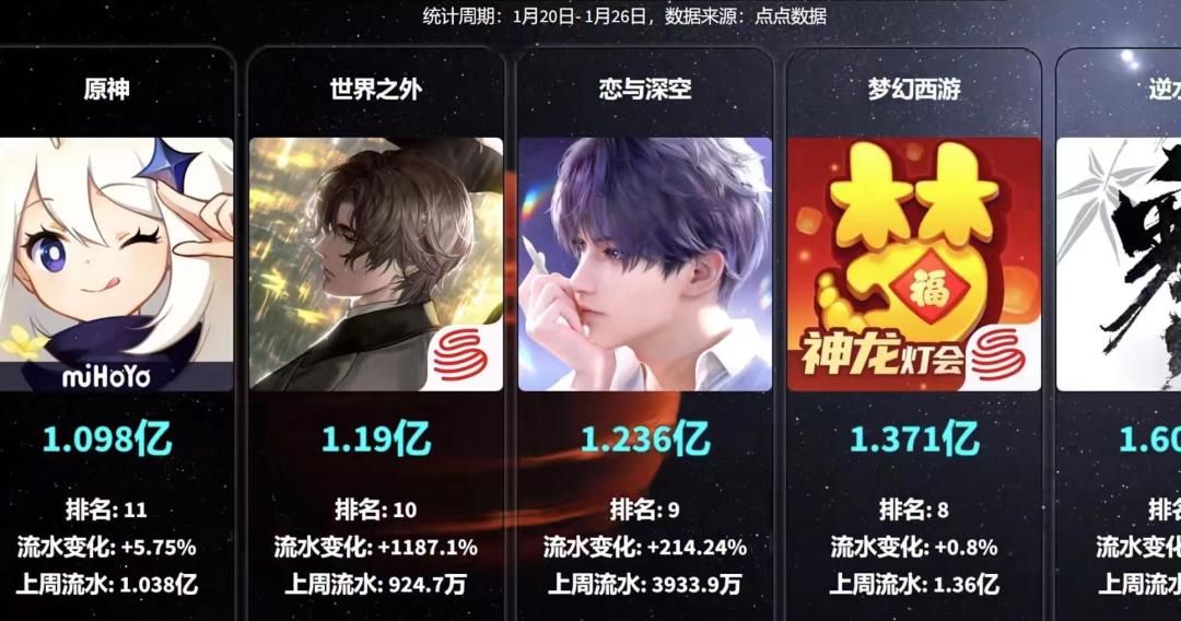 《恋与深空》《世界之外》周流水超原神:乙女游戏重返“赛场”