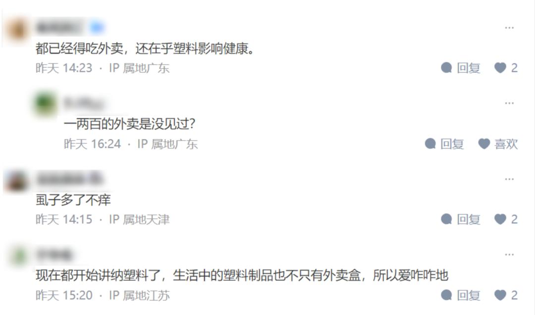 还有老哥开启了摆烂模式, “ 都开始吃外卖了,谁还在乎塑料影响健康 ” 、 “ 爱咋咋地 ” 。。。