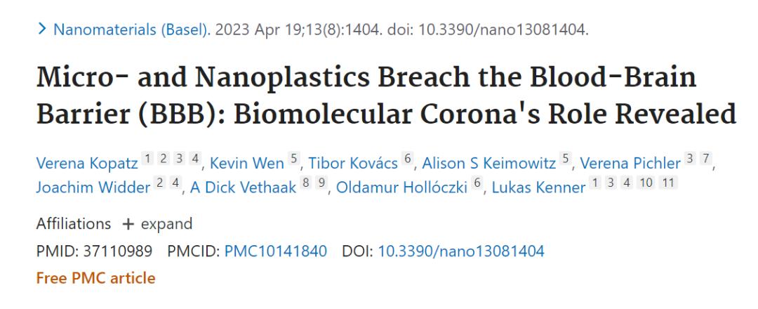 而开头说到的微塑料两小时进入大脑,世超专门翻到了文章里面提到的论文,是美国国家标准与技术研究院团队在去年 4 月份就公开发表的。