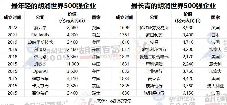 对于一些企业排名的上升,胡润研究院做出了解释。例如拼多多,胡润研究院认为,拼多多排名的上升,主要是因为其国内市场营收大超预期,并成功进入美国市场。在榜单最年轻的10家公司中,只有拼多多、ChatGPT母公司OpenAI和理想汽车是初创企业,其余的皆为合并或分拆。