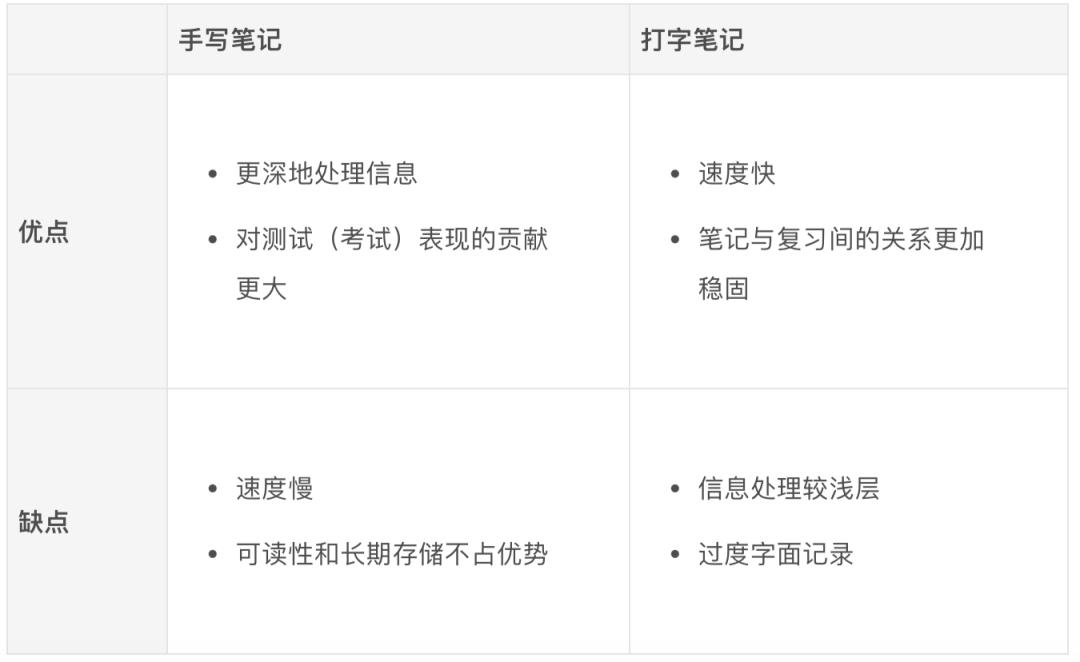 那我们总结一下手写笔记和打字笔记: