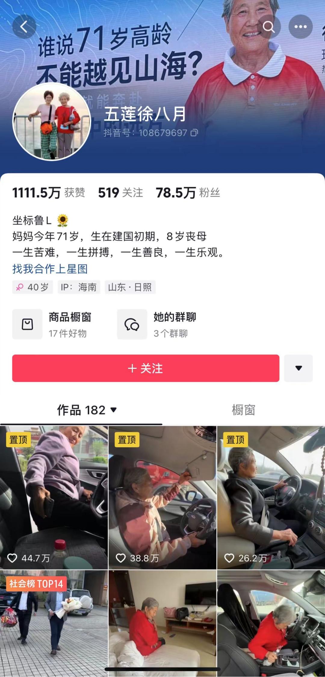 关键点来了,被砸车的车主,原来并不是一个普通网友,而是一位网红奶奶,71岁山东徐奶奶,又能下地干活,又能开车自驾西藏,还能骑车……在抖音有近50万粉丝(现在已经涨到了近80万粉丝)。