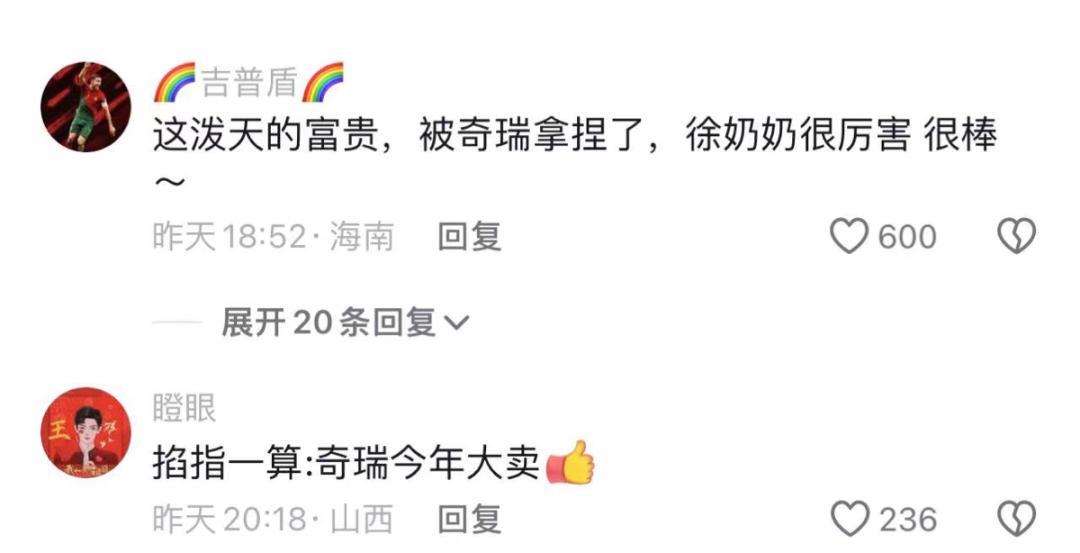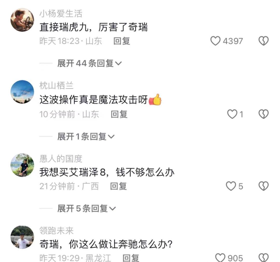 网友纷纷表示:这泼天的富贵,奇瑞接住了。