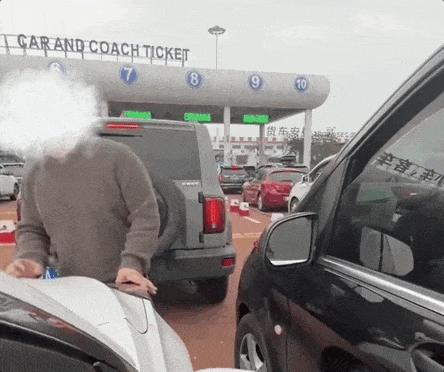 画面是一辆白色奇瑞汽车(划个重点,下面细说),在广东湛江徐闻港排队进港坐轮渡时,被一辆奔驰车试图加塞,一男子从奔驰车上下来,怒砸白车的擎盖及进行辱骂。
