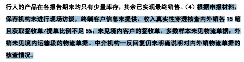 早期,对销售收入核查只要求通过视频/电话走访和函证、核对财务凭证、出库单、运输物流单等进行真实性核查。目前,对销售收入的核查则严格得多,有时候仅提供交易双方的互相验证是不够的,还要与第三方数据进行交叉验证,针对贸易商占比较高要求进行穿透核查。