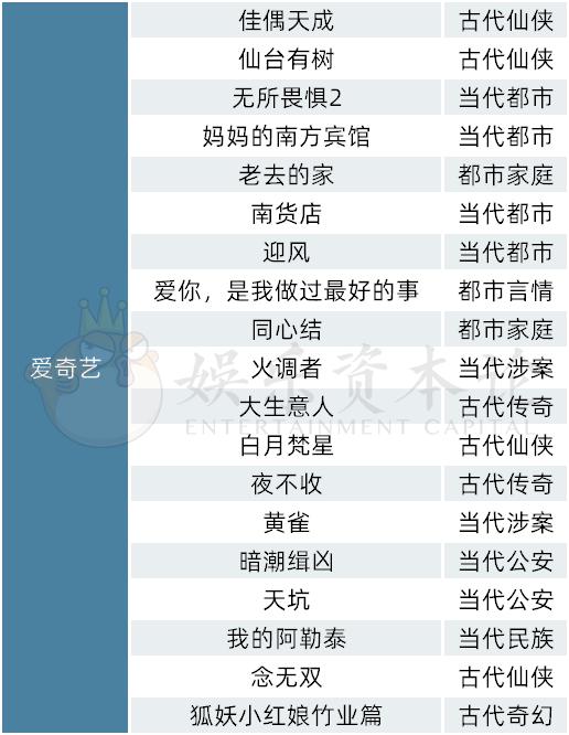 从年代和题材来看,爱奇艺在剧集备案项目中呈现出重当代、轻古代、重涉案、轻玄幻的内容策略。爱奇艺始终在剧集领域处于领头羊地位,自2014年公开宣布开展“工作室”战略,爱奇艺已具备相当成熟的自制剧生产体系。
