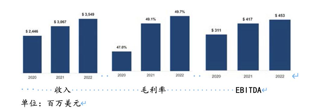 最为直观的成绩,正如前面招股书中提到的,2020年到2022年,亚玛芬体育的收入从24亿美元增加到35亿美元,复合年增长率达20.4%,毛利率从47.0%增至49.7%。
