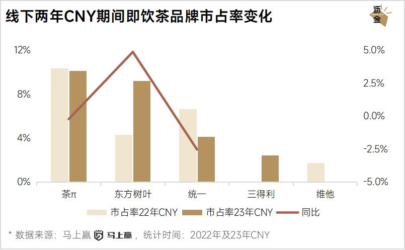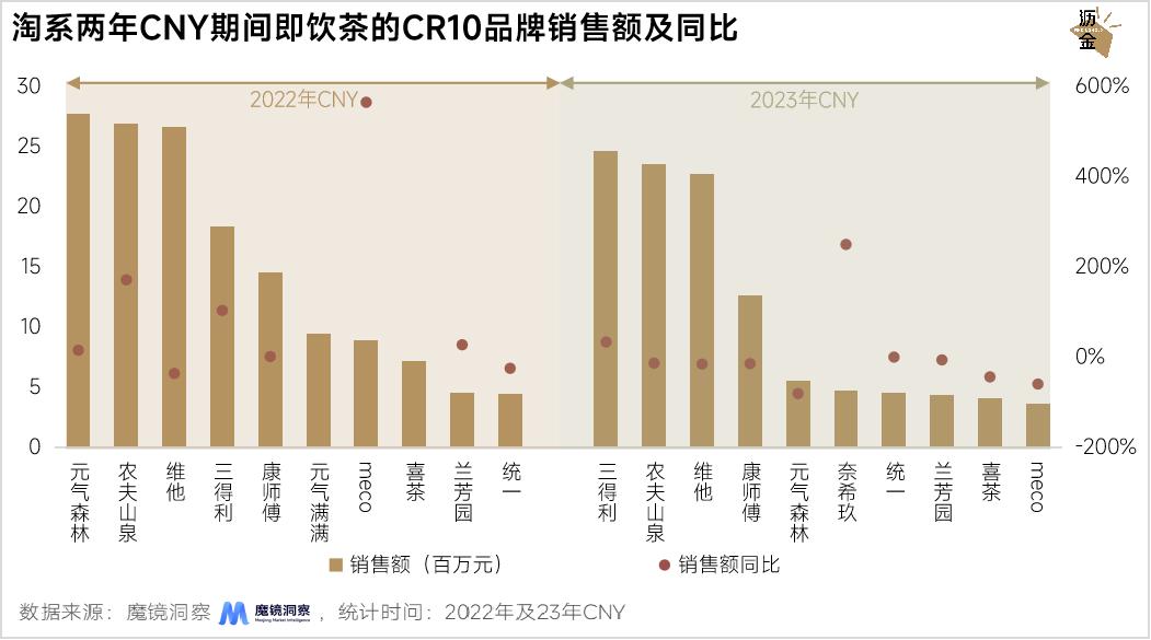 淘系两年CNY期间即饮茶的CR10品牌销售额及同比