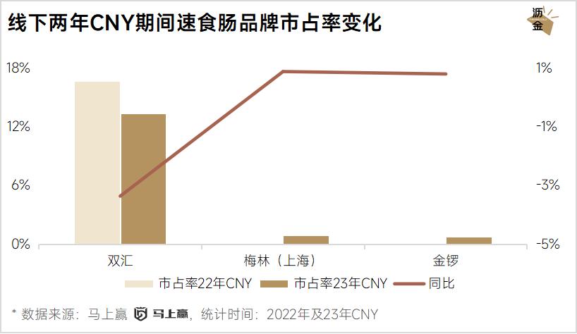 其中,双汇凭借超强的新品迭代能力及线下渠道优势,在线下销售中占主导地位。2023年CNY期间市占率前10的商品都属于双汇,产品中既有不同克重的传统火腿,又有不同口味的台式、玉米风味火腿。