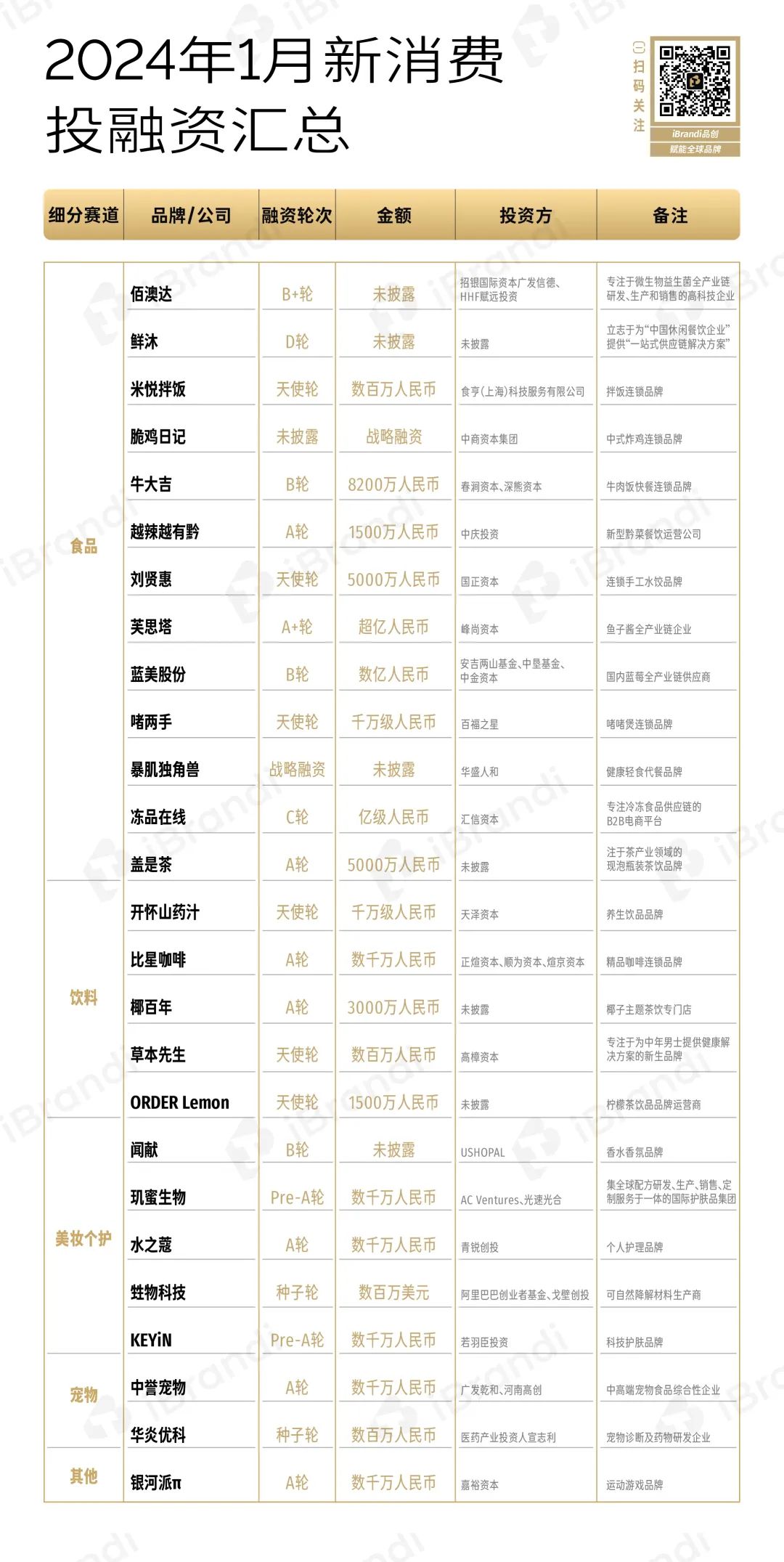 1、该融资数据由「iBrandi品创」不完全统计,由于新消费涉及面较广,故可能存在统计遗漏情况;