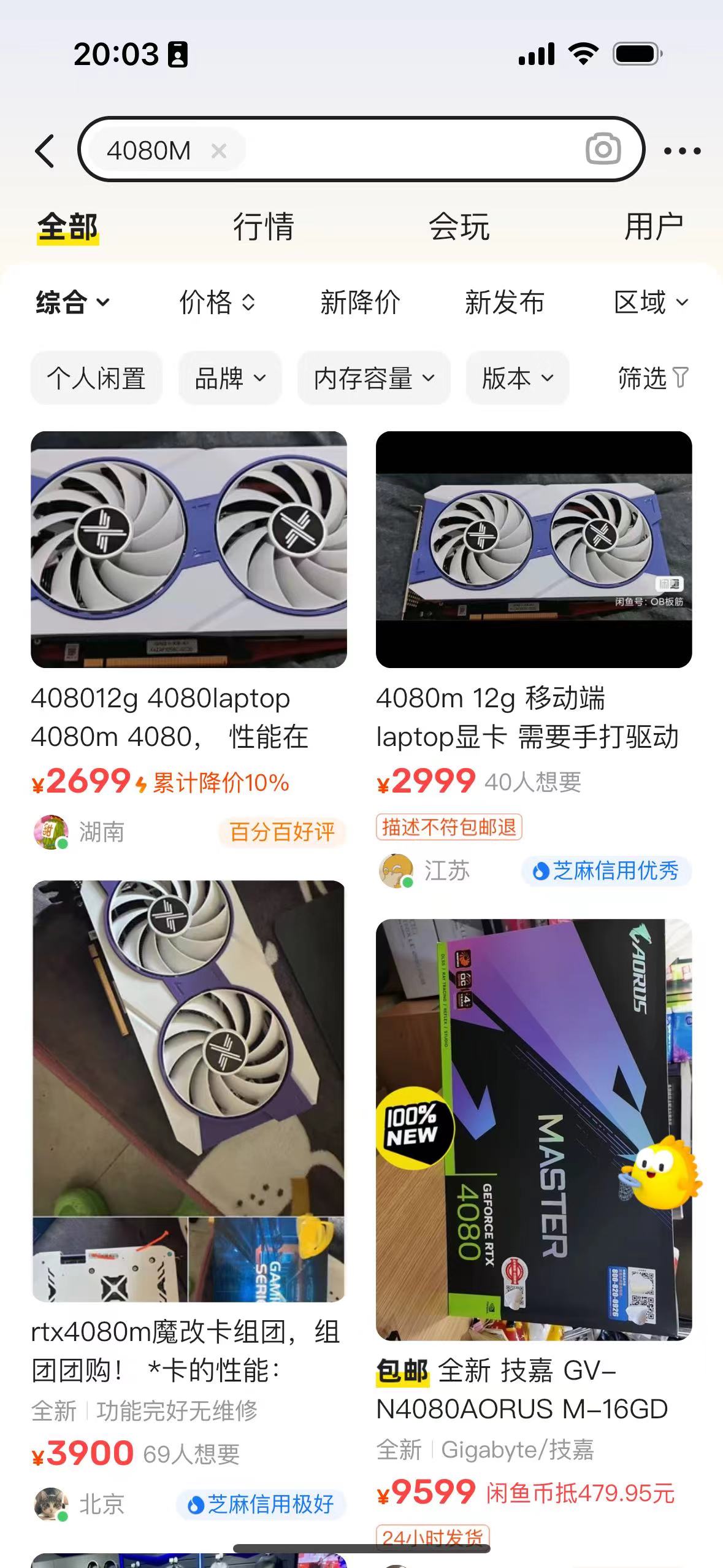 前段时间,国内某二手平台上突然涌现出一批来路不明的「魔改显卡」,型号普遍为 RTX 4080M,售价在 3000 元左右。当然我们也能找到更高端的 RTX 4090M,售价普遍过万。如果光从性价比的角度看,用不到 4070Ti 一半的价钱就能买到接近 4070Ti 的性能,这些魔改显卡已经超越了 4090,成为真正的性价比之选。但问题在于,这些显卡并不是为台式电脑准备的显卡。