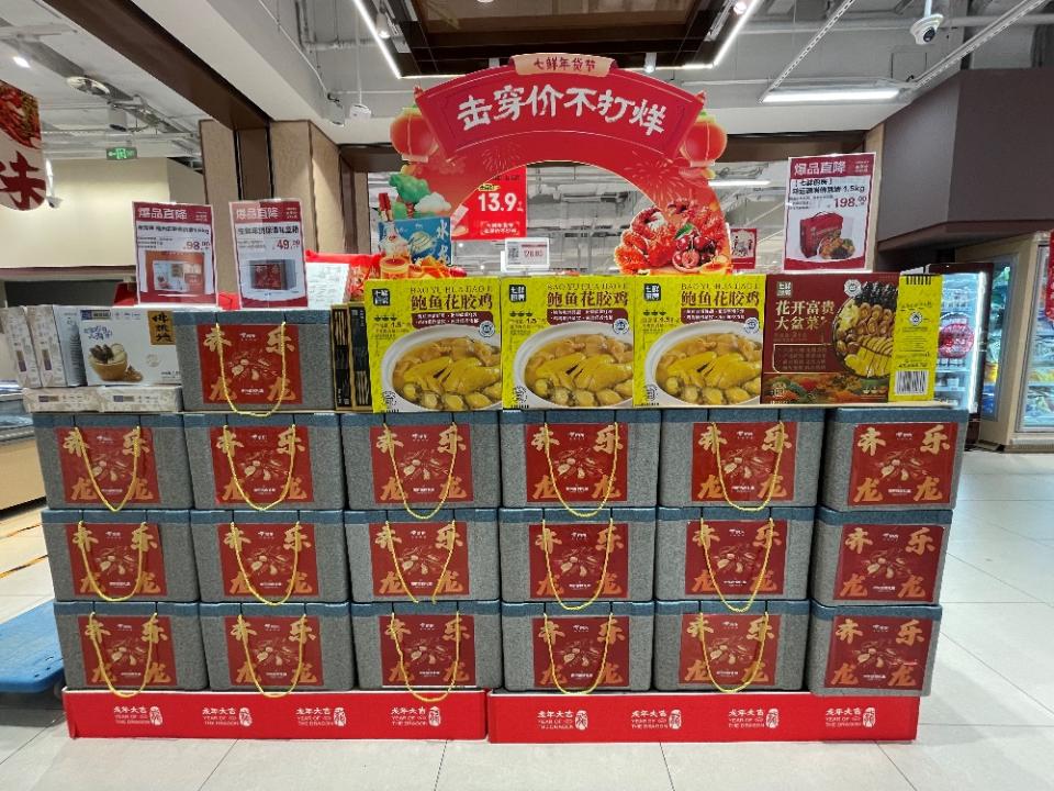 除了做电商,京东也在线下布局。京东七颜生鲜超市已经上架多种预制菜产品,七鲜厨房出品的花开富贵大盆菜售价348元/盒,另有剁椒鸳鸯鱼头、麻辣小龙虾等产品。