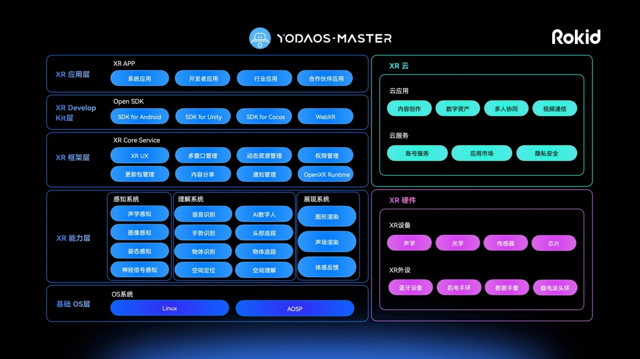 “我们研发的YodoOS-Master AR底层系统,或是目前最为完整的一套面向空间计算时代的AR空间操作系统。”去年8月发布会上,Rokid副总裁兼XR中心负责人王俊杰口曾这样表达。