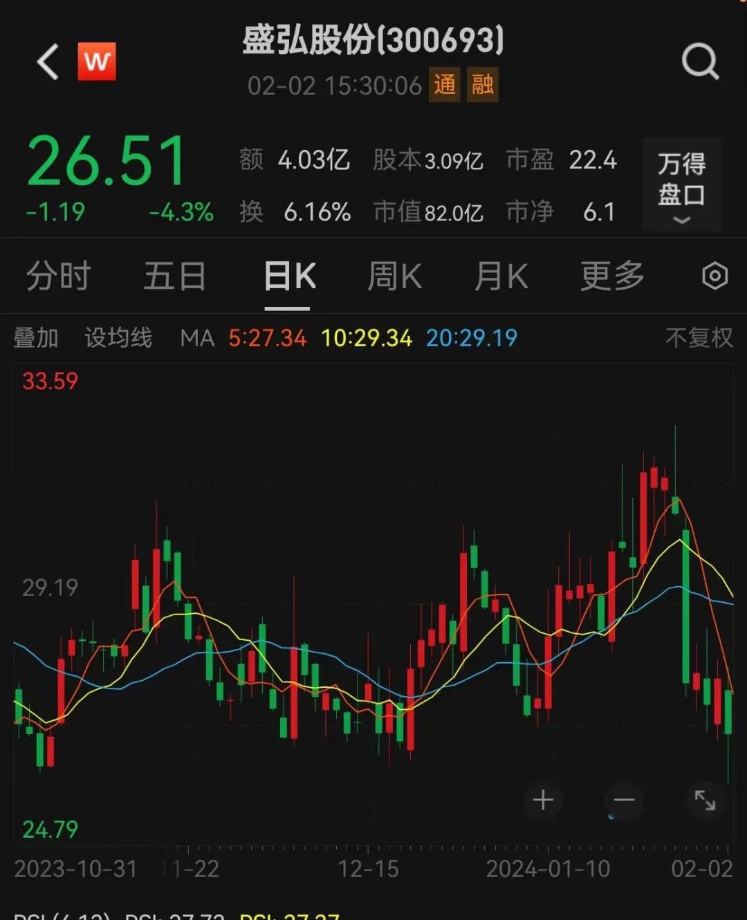 截至2月2日,盛弘股份股价报26.51元,最新市值为82亿元。