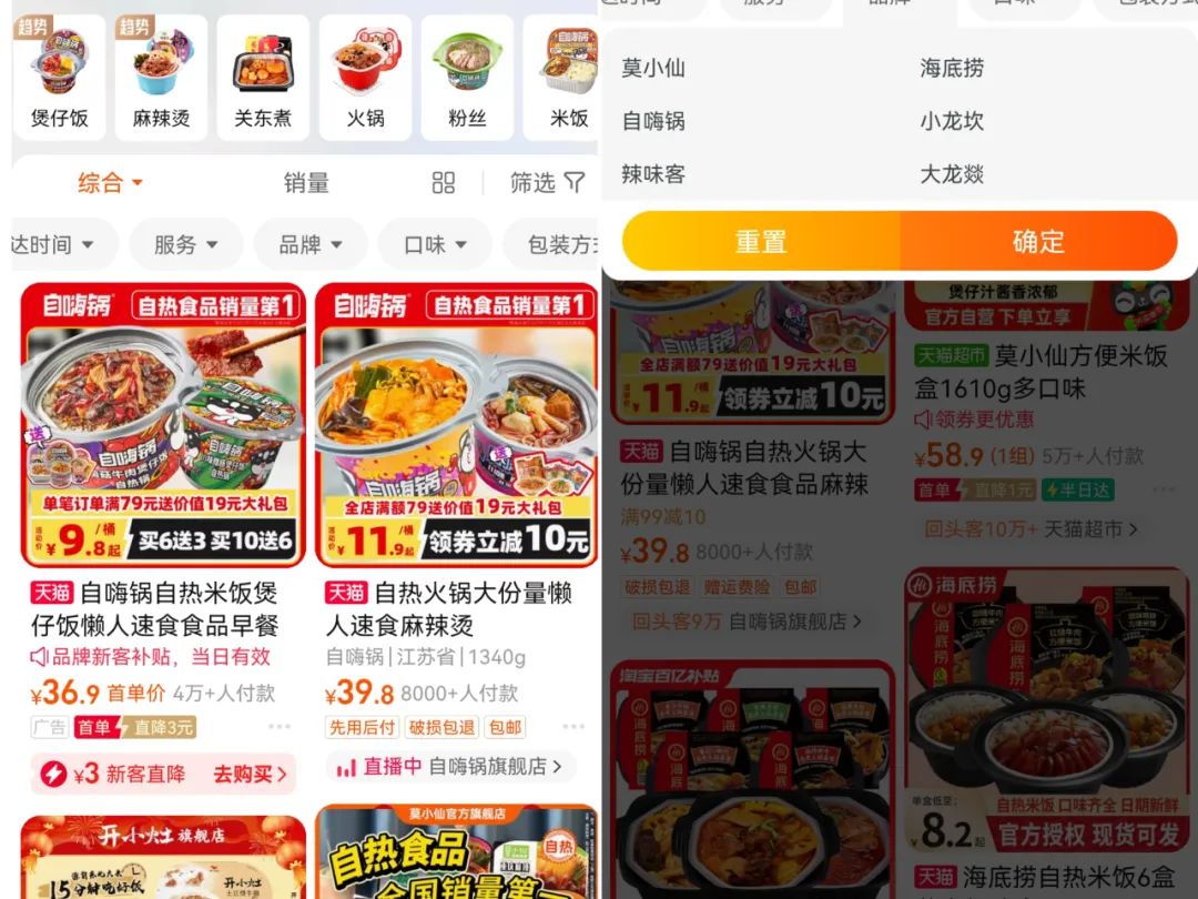 不过,通过搜索电商平台,整体来看入局自热锅的品牌不少,但垂直自热锅赛道的品牌却不多。电商平台显示,销量和排名靠前的便是自嗨锅和莫小仙。作为曾经的顶流热门赛道,早已吸引了众多餐饮品牌来入局,比如海底捞、小龙坎、大龙燚、蜀大侠、德庄等推出自热火锅、自热米饭等,并在电商平台、线下便利店和商超里面售卖。