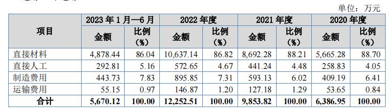 中草香料在招股书中也提到,直接材料占主营业务成本相当大比例,2020年至2023年上半年占比分别为88.70%、88.21%、86.82%和86.04%。而这也让中草香料的产品成本受直接材料影响较大。