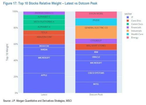 摩根大通直言,如今大盘涨幅依托少数超级权重股,与科网泡沫类似: