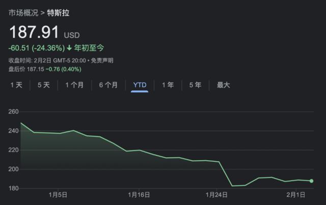 英伟达将于本月晚些时候公布最新业绩,今年以来股价已经飙涨34%;特斯拉此前发布财报显示四季度业绩不及预期,并警告今年增长将放缓,今年以来股价累跌24%。